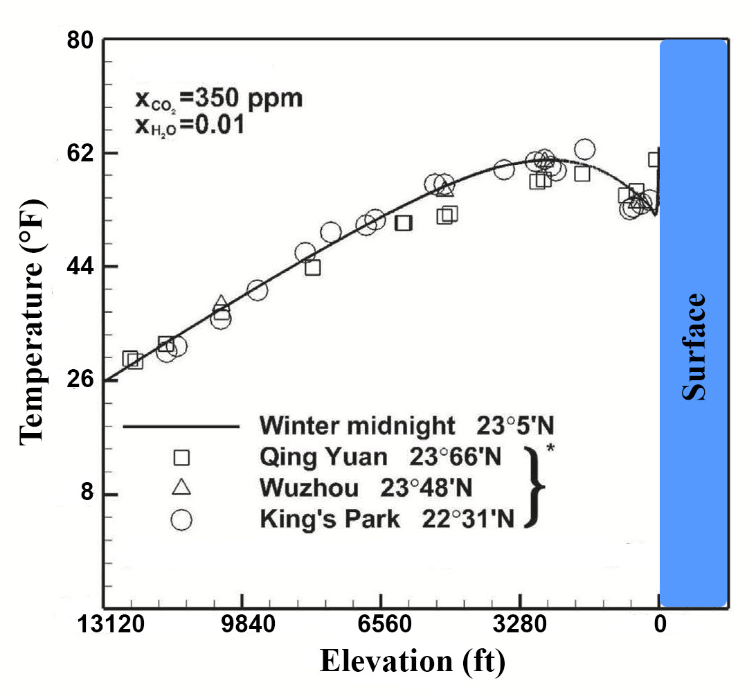 I haven’t checked the math (24 equations and 8 figures factor into the above, but it’s been peer-reviewed), but this is the right way to think about extending the problem from the laboratory to the planet. It fits with the previous idea that air temperature is adjusted by water vapor and carbon dioxide in the air.