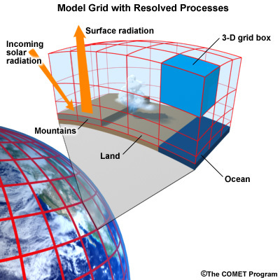 “The atmospheric component of the climate model is very similar to a numerical weather prediction model. The model solves for both resolved processes, like motion, and parameterized processes, like cloud physics.