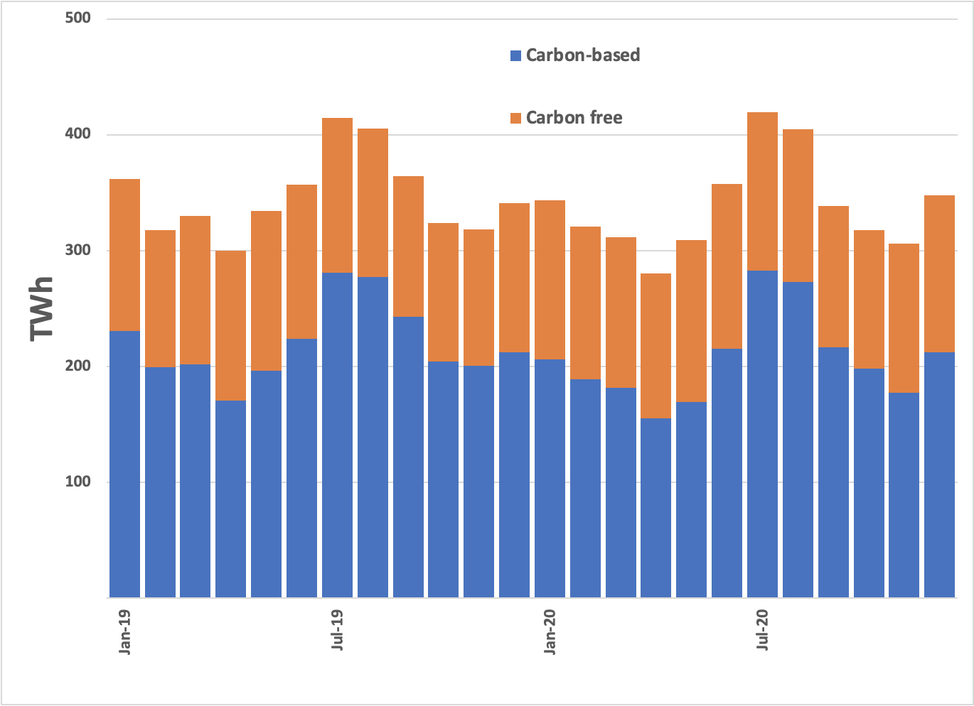 Now, you should be able to visualize the size of the problem. I’ve reiterated: Our decarbonization efforts so far (and even those on the eco-lunatic fringe) are no better than a rain dance. Plus, there’s this observation: Half of our carbon-free electricity comes from nuclear power. Are we comfortable with doubling that?