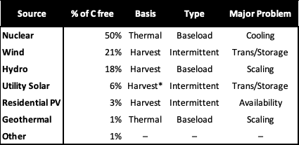 In the last installment, we considered the available sources of carbon-free energy. So let’s look a little closer at our options: