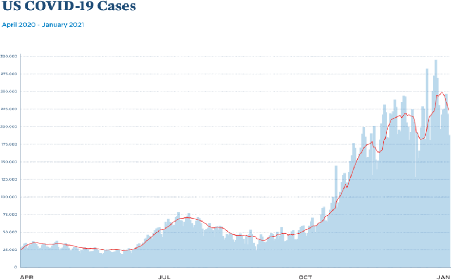At a year into the pandemic, we’d gotten better at preventing death (going from about 6% to about 2% fatality), but case counts were continuing to rise. We also had just gotten access to effective vaccines. In a clinical trial completed in December, involving tens of thousands of volunteers, these vaccines showed an astonishing 95% efficacy in preventing serious disease and death from COVID. Understandably, getting people vaccinated as quickly as possible would improve these numbers: The data showed that vaccination would predictably and dramatically reduce both fatality and the burden on the healthcare system. [As a side note, the big concern was the UK (Alpha; B.1.1.6) variant; The now-famous Delta (B.1.617) variant had been identified in India, but hadn’t yet been elevated to Greek letter status, and Omicron was still mutating in South Africa.]