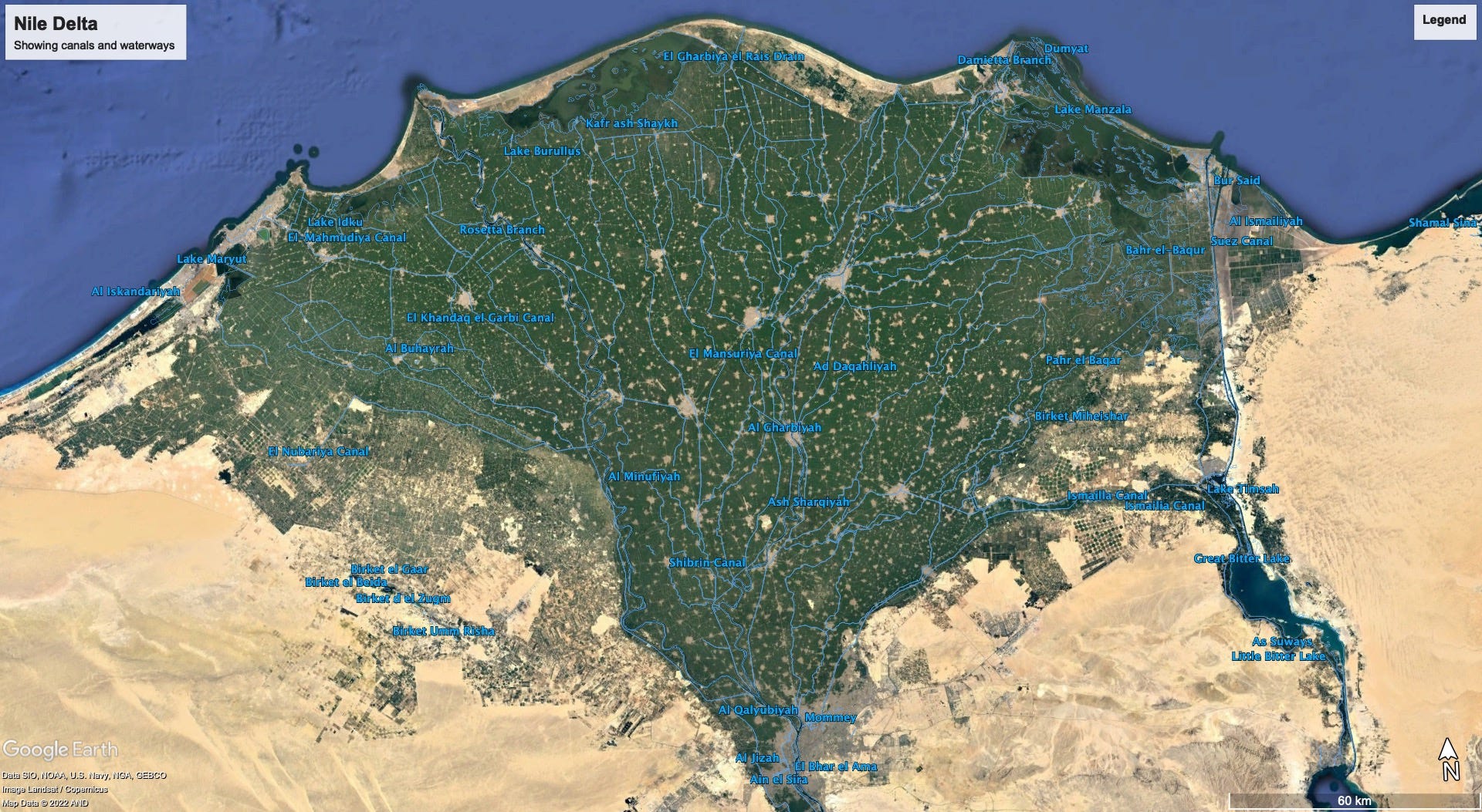 Let’s look at the oldest and most productive irrigation system globally, the Nile Delta.