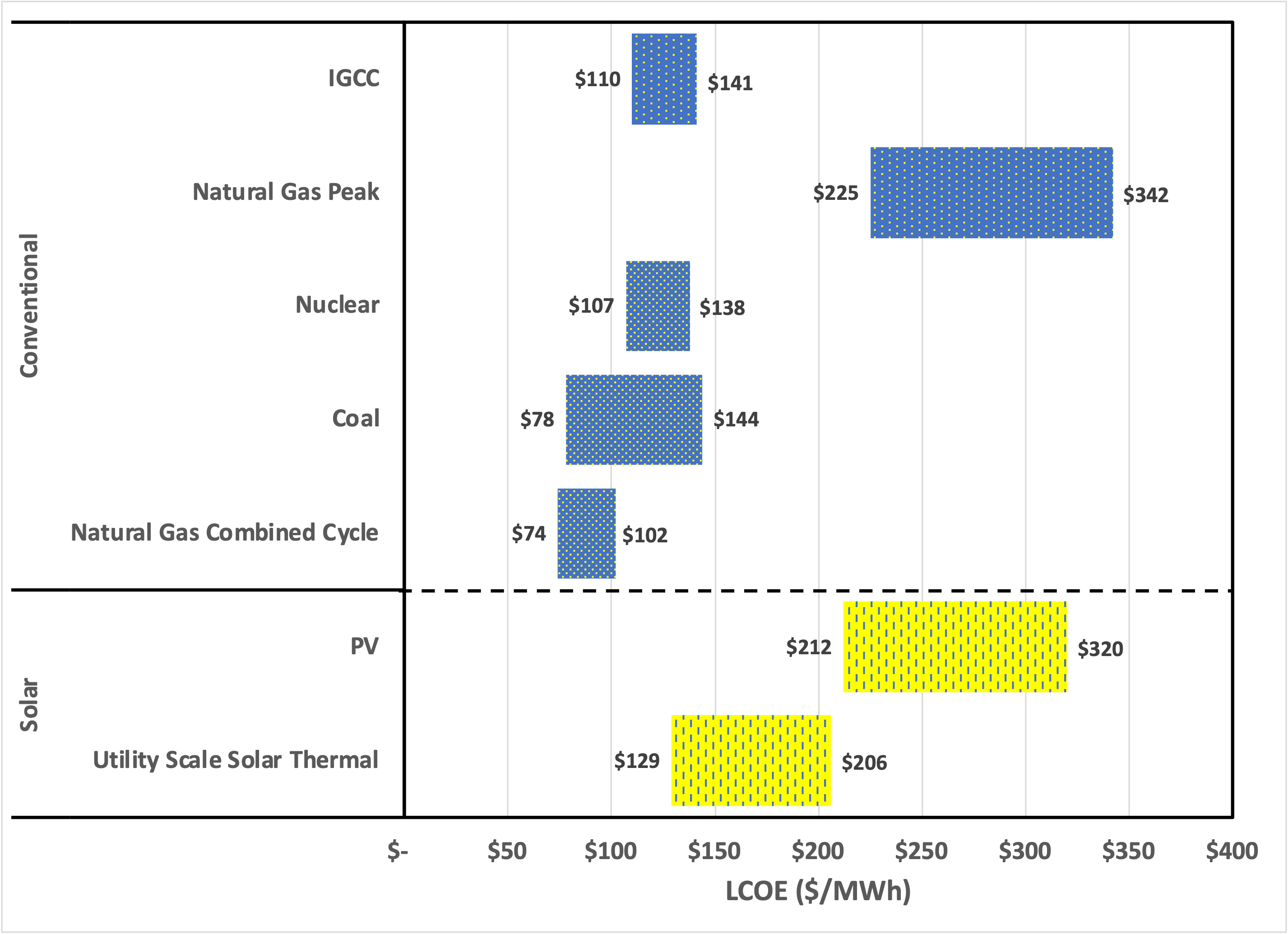 Certain Alternative Energy generation technologies are already cost-competitive with conventional generation technologies under some scenarios, even before factoring in environmental and other externalities (e.g., RECs, potential carbon emission costs, transmission costs) as well as construction and fuel costs dynamics affecting conventional generation technologies.