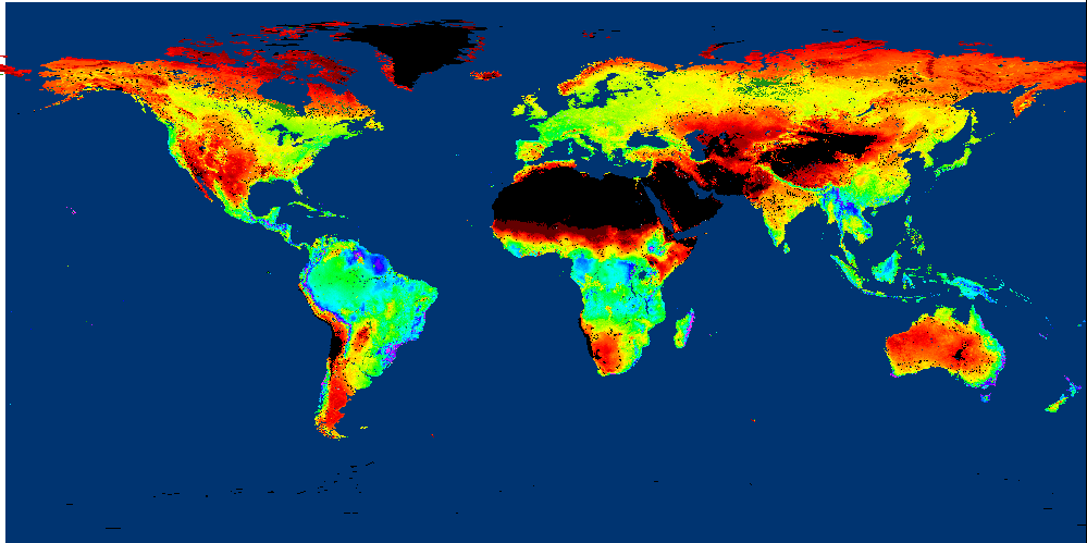 There are significant differences in the measurements, though. The above map looks at annual net photosynthesis productivity based on satellite measurements and ecosystem models. In contrast, today’s graph looks at net ecosystem efficiency based on direct carbon dioxide measurements.