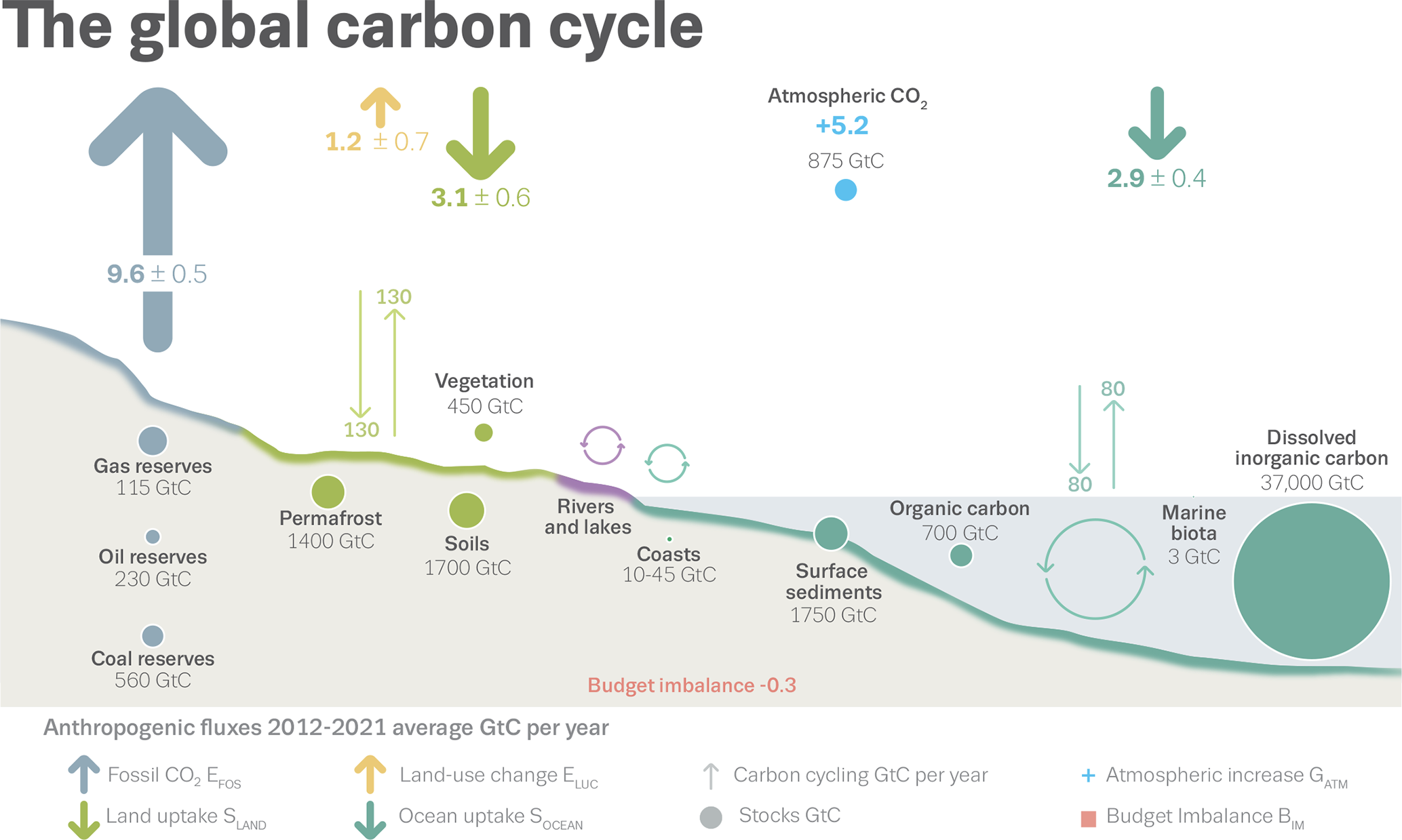Of course, since 1984, models have gotten increasingly complex, to the point that no single person can grasp the entire landscape. As a result, a complete website and community have formed around developing a “global carbon budget” to check and refine the models, bringing them closer to balance. [As a sense of the increased complexity, the 1984 article had five authors, while the latest carbon budget manuscript1 has a whopping 108.]