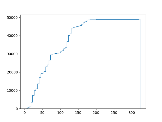 The cumulative distribution looks like this: