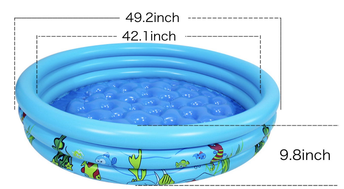 Yes, this is an inflatable kiddie pool! The above pool can be purchased for $3.60 in bulk, manufactured in China. Filled to the top, it holds just under 60 gallons.