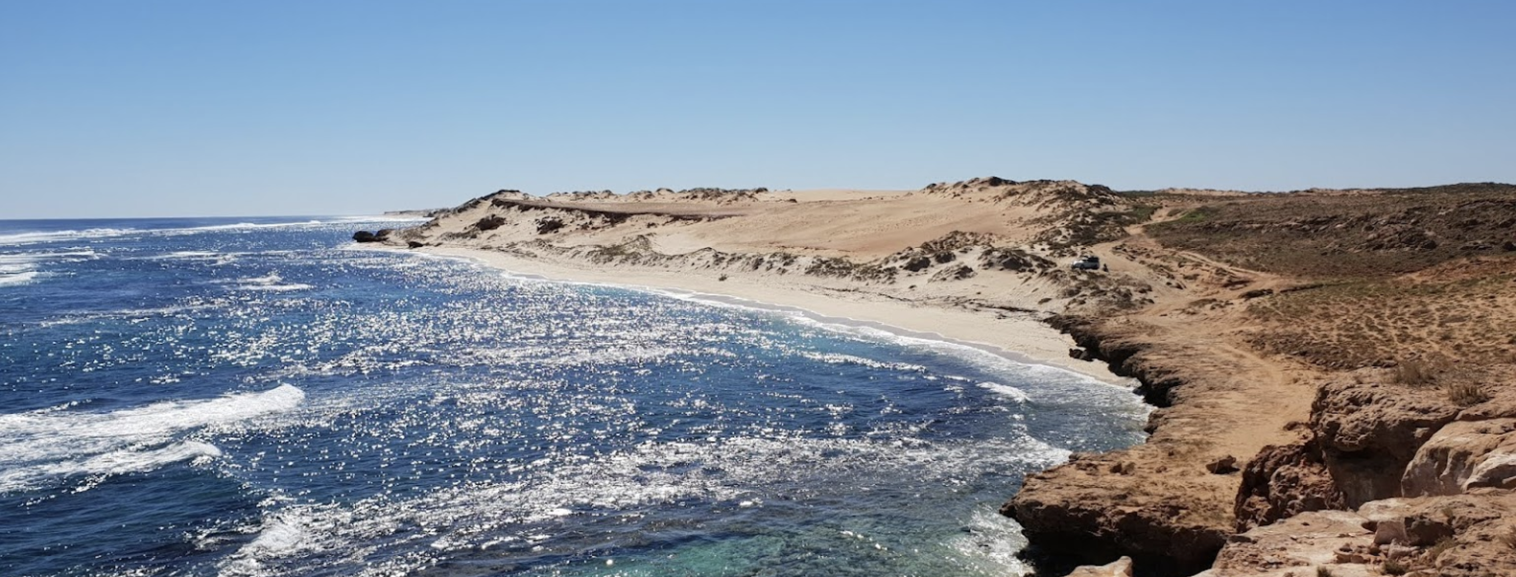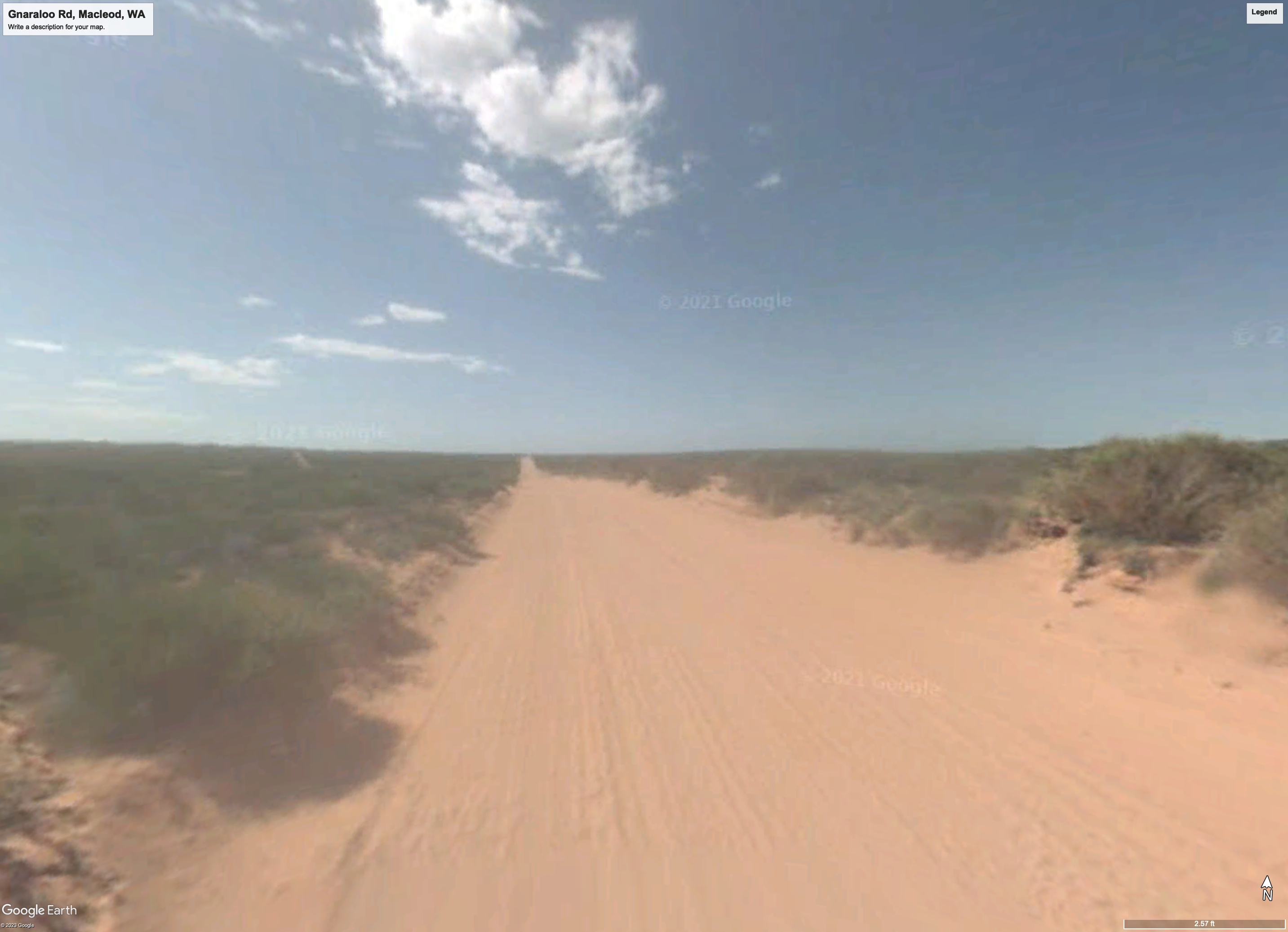 I randomly picked a location near Gnaraloo Turtle Beach near Macleod, Western Australia, and chose a pipeline route beginning a mile off-shore. This combination would provide a water supply close to Gnaraloo Road, a narrow dirt road roughly two miles from the ocean. The area is almost flat, ideal for agriculture except for the lack of water. Here’s what it looks like: