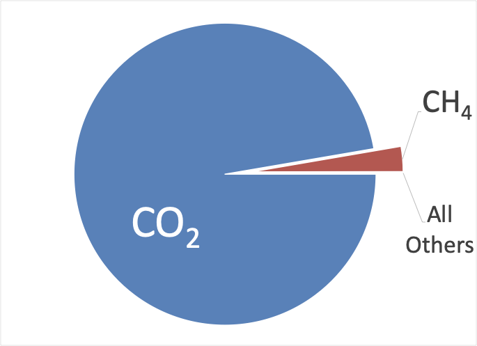 I’ve chosen to count molecules because, based on the Second Law of Thermodynamics, it takes roughly the same amount of energy to concentrate and remove any specific gas molecule from the atmosphere as any other specific molecule. If we stop methane emissions today, it’ll be a few decades before the atmosphere adjusts naturally. If we stop CO2 emissions today, it’ll be a few millennia. That’s the problem.