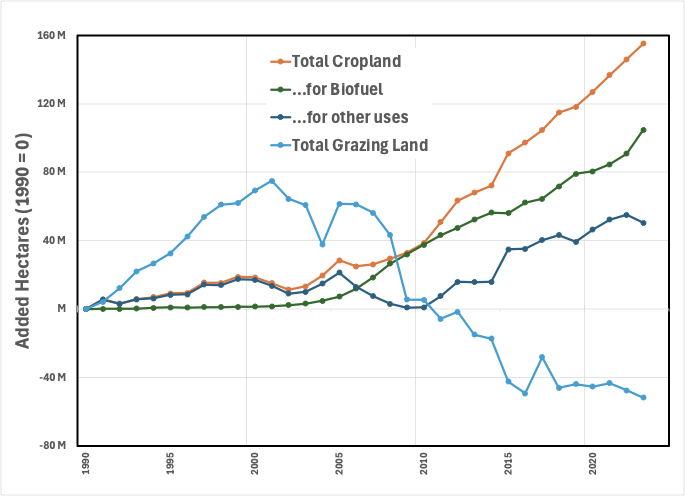 To that end, look at another tabulated land use: Grazing of livestock. If that is plotted as well, here’s what we see: