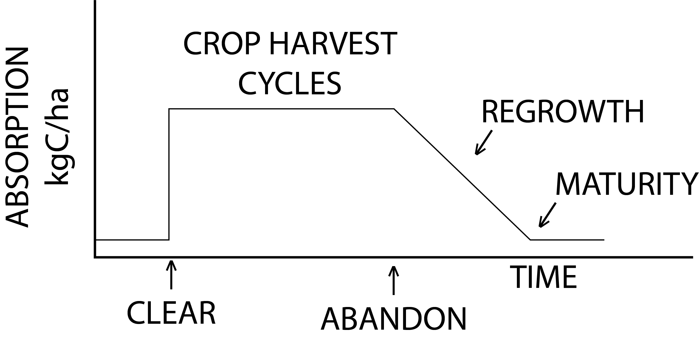 Which profile is best for carbon removal? It depends, of course, on several factors, particularly how much of the harvest is turned back into CO2. The models assume that release is instantaneous, which is absurd. We have data about what would happen if the lumber were piled up and left to decay: It takes between 20 and 30 years to restore a clear-cut rainforest4. But, it takes even longer (up to 150 years) for wood to decompose (and it never does entirely because some carbon is retained in the soil)5, so clearcutting the rainforest may be (surprise!) carbon negative. In any event, active clearing beats waiting for forest fires to make the point moot.